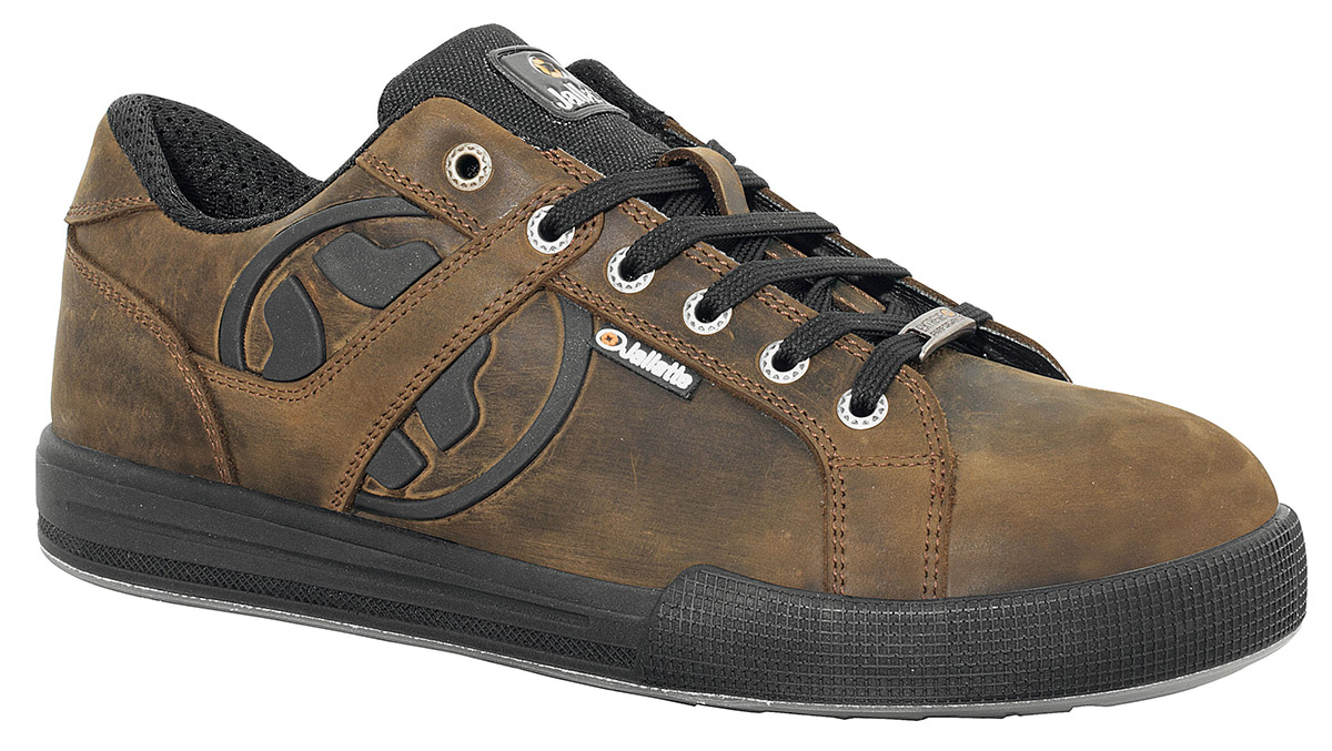 Pelle fiore idrorepellente con finitura pull-up. Inserto laterale logo Jallatte in TPU